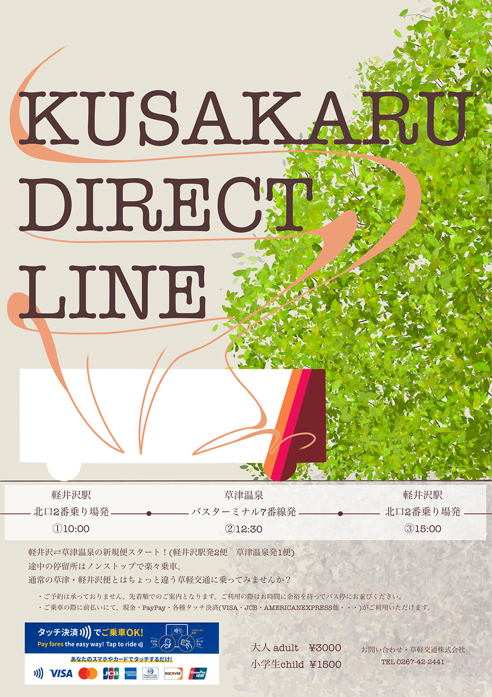 2026年2月1日(日)より、軽井沢駅と草津温泉をノンストップで結ぶ「直通バス」の運行を開始いたします。 土曜・日曜・祝日限定の運行で、観光やレジャーがさらに便利に、快適になります。